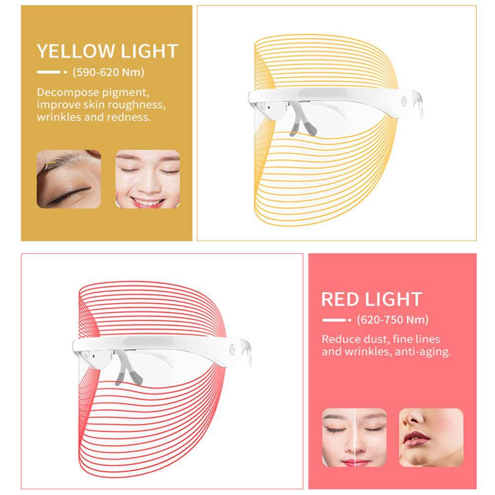 Красный светильник (длина волны 630 нм) режим против морщин: способствует выработке коллагена, отбеливает пятна, омолаживает кожу, против морщин, восстанавливает поврежденную кожу и разглаживает мелкие линии.